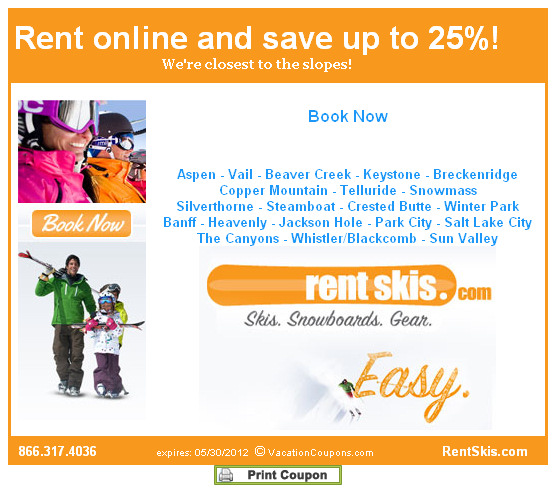 Companies like Breeze Ski Rentals are offering 30% off their rental equipment right now. It’s never too early to start thinking about that family ski vacation and whether to buy and lug the gear to the slopes or rent instead. Many Ski Shops are offering early bird deals so you won’t have to pay as much when that vacation creeps closer and closer. Rent Skis and Christy Sports are also multi-area operations offering rentals wherever you are going!